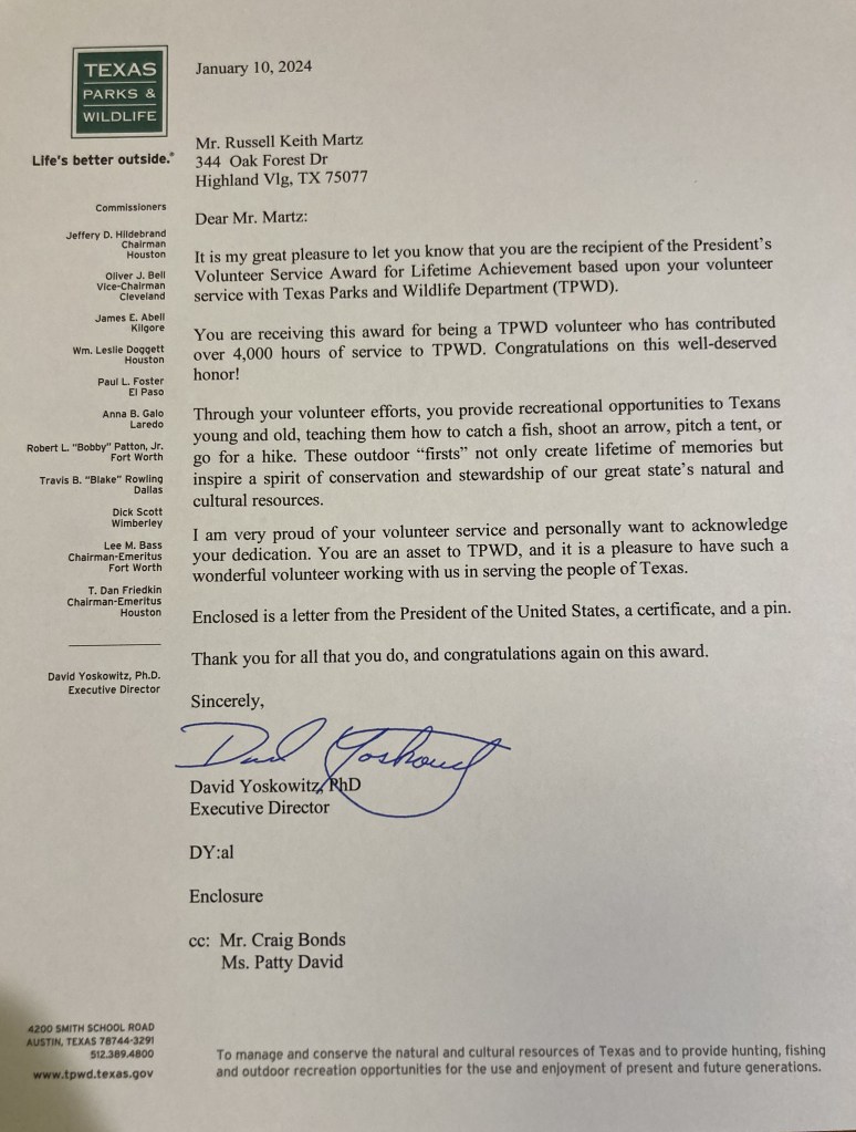 Doc’s Founder was awarded the Lifetime Achievement Award for Volunteer Hours for his work in Hunter Education. Every year, Doc’s volunteers put in HUNDREDS of hours to promote outdoor education experiences for kids and Doc’s DOES NOT EXIST without them. This is truly a group award, so a big THANK YOU to the volunteers who give their time, talent and hearts to the kids without asking anything for themselves. In a typical year, Doc’s volunteers tally up literally thousands of man hours together to provide for kids and their parents.